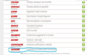 - Compilare il modulo di conferma iscrizione sul registro elettronico (iscrizione “conferma iscrizione anno successivo”, vedi immagine riportata qui sotto).